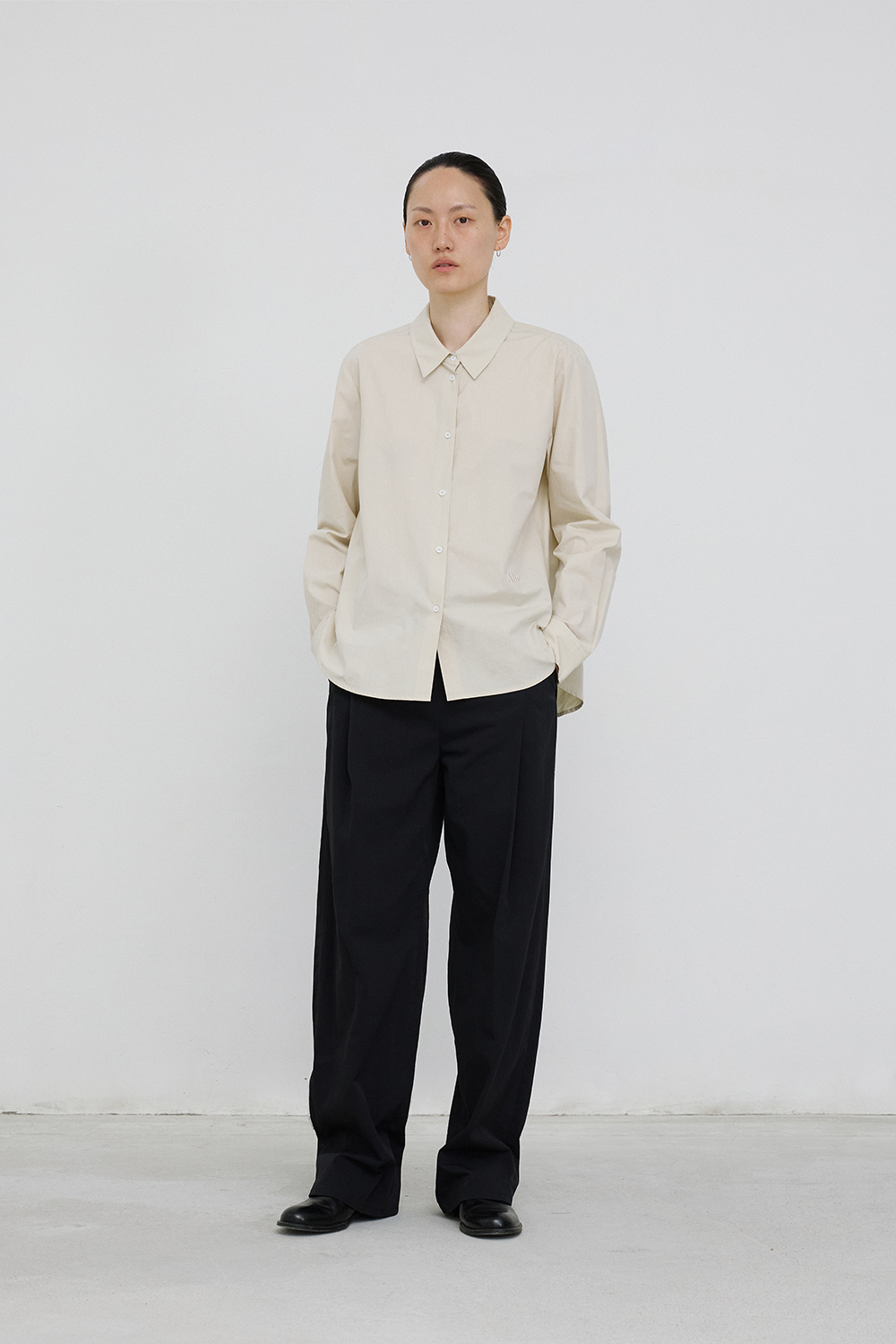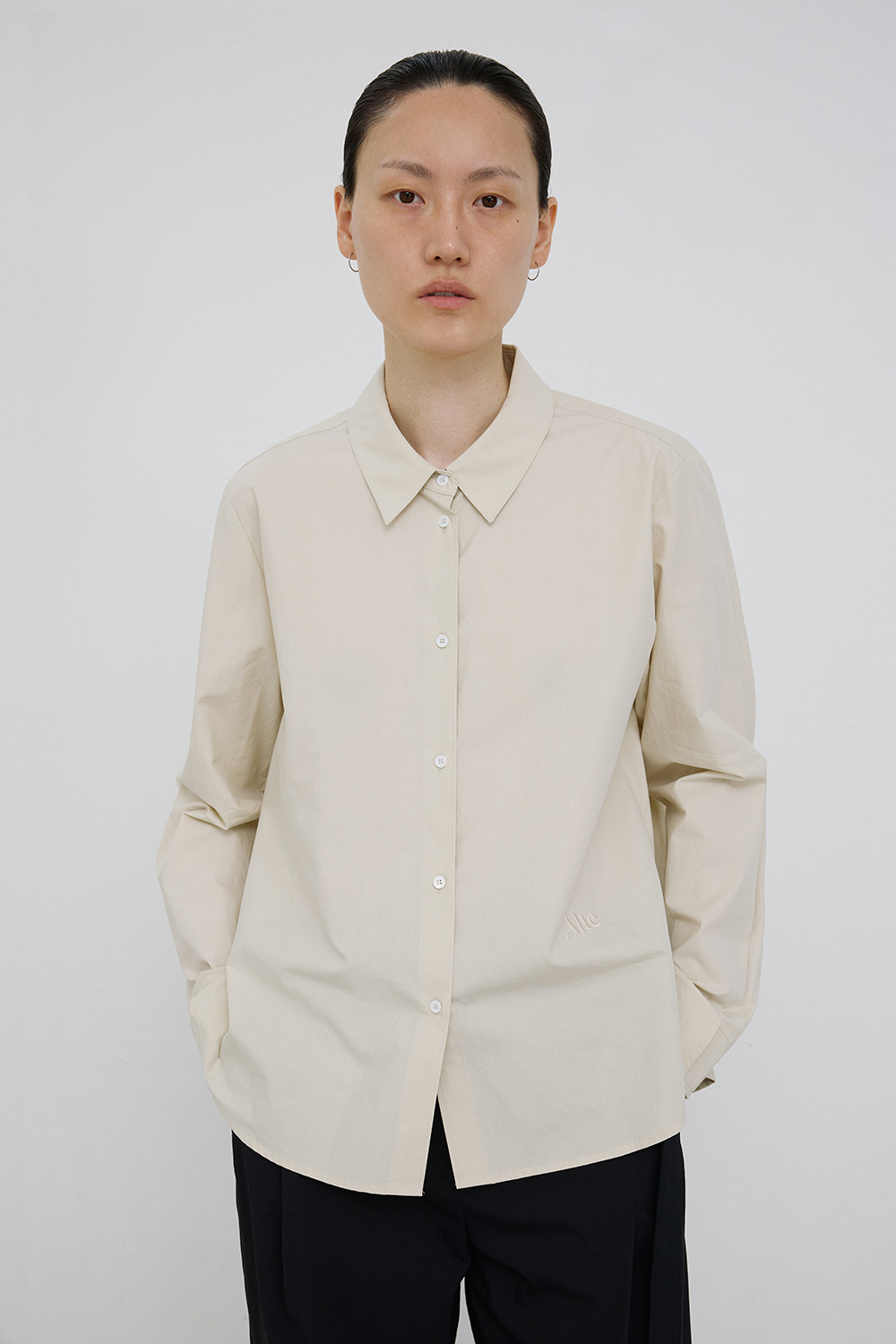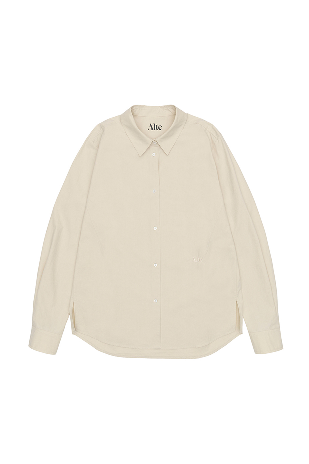 - A cotton shirt in a mild cream beige color.