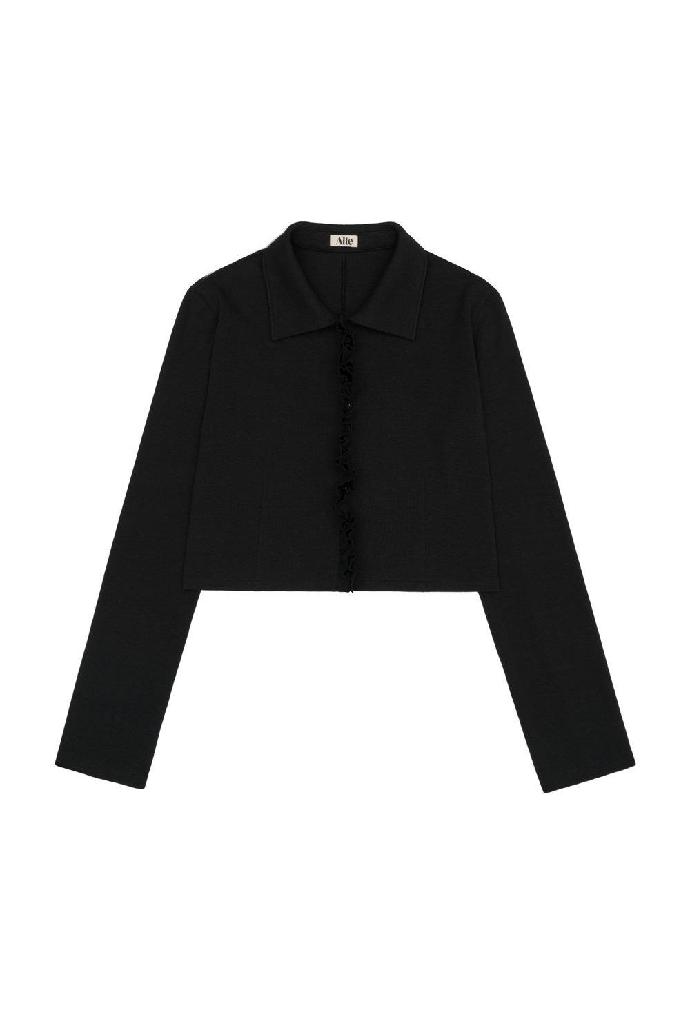 RUFFLE JERSEY CARDIGAN _ BLACK
